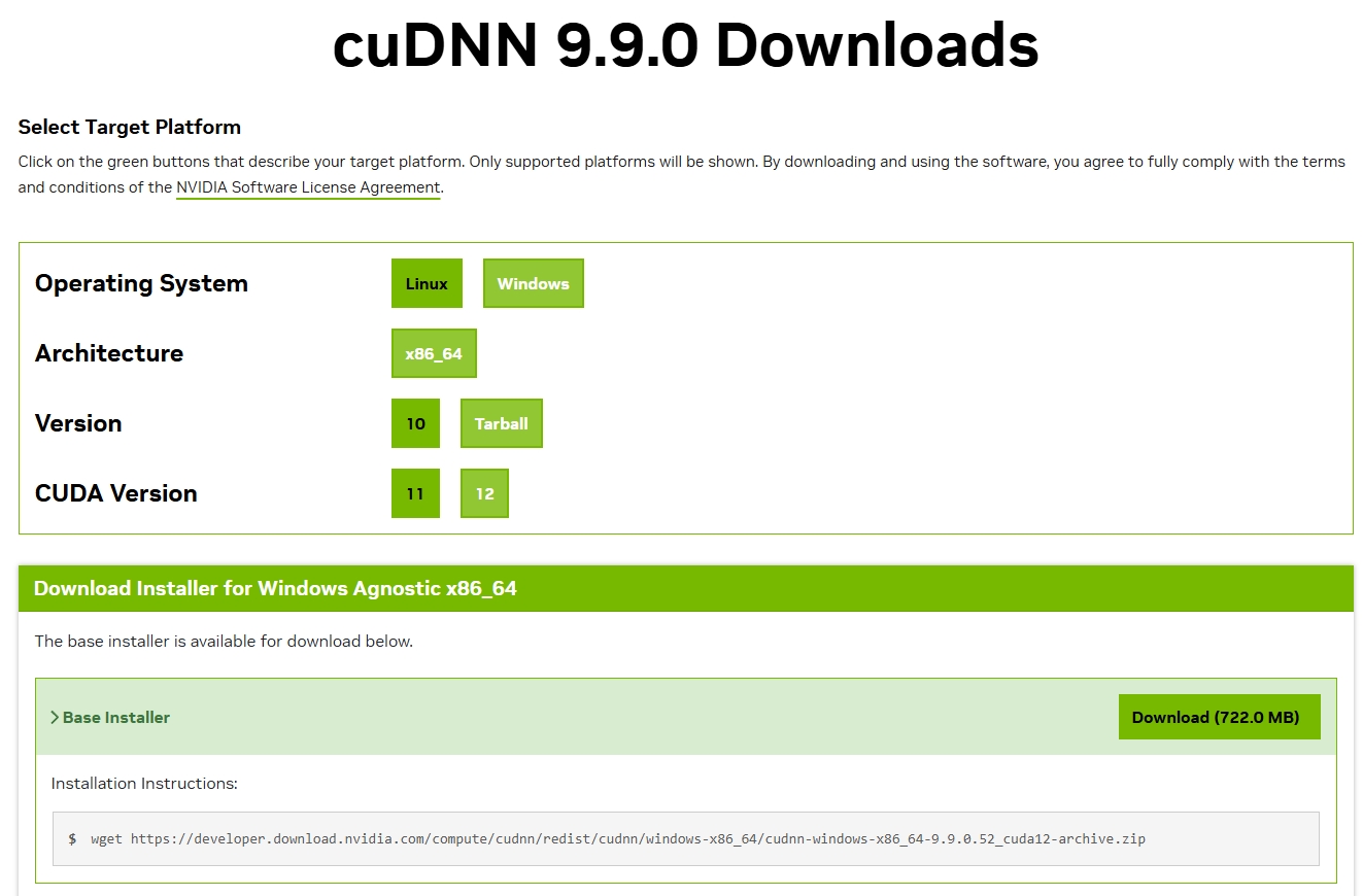 https://developer.nvidia.com/cudnn,在 cuDNN 的版本中,选择支持该版本的 CUDA 即可,然后点击下载即可: