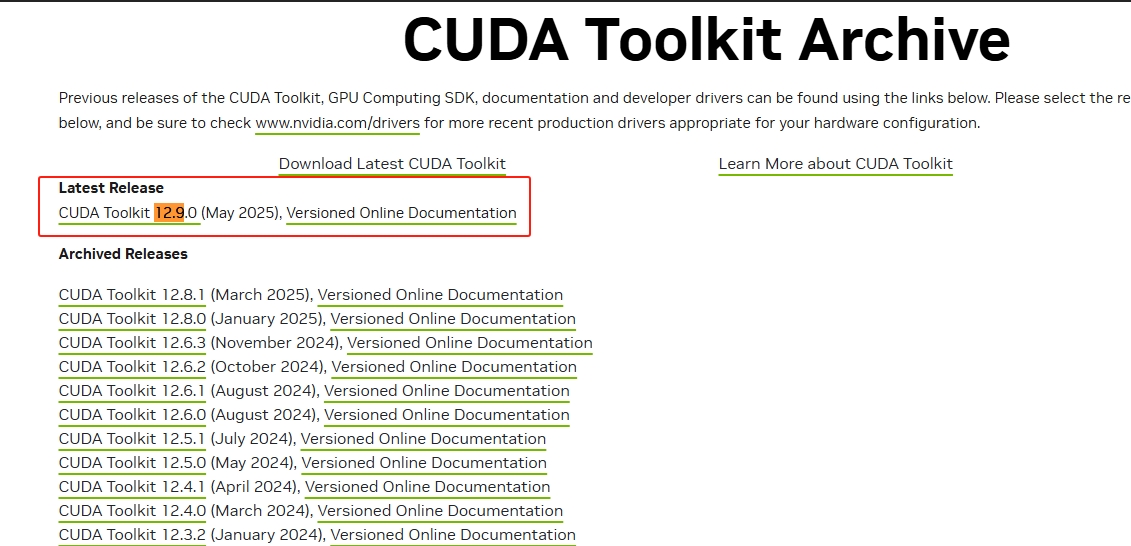 CUDA Toolkit Archive,页面检索下载对应的版本即可。