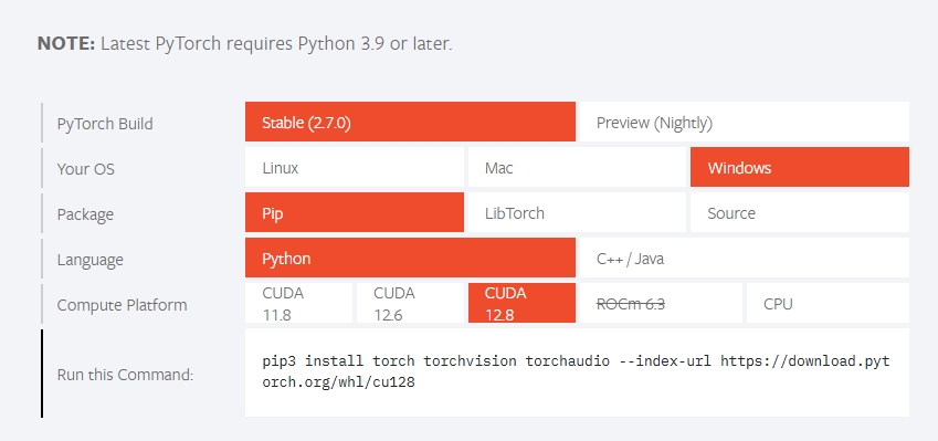 | pip3 install torch torchvision torchaudio --index-url https://download.pytorch.org/whl/cu128