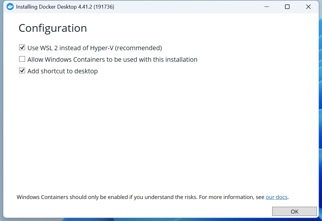 双击Docker Desktop Installer.exe程序文件,开始安装,默认即可:
