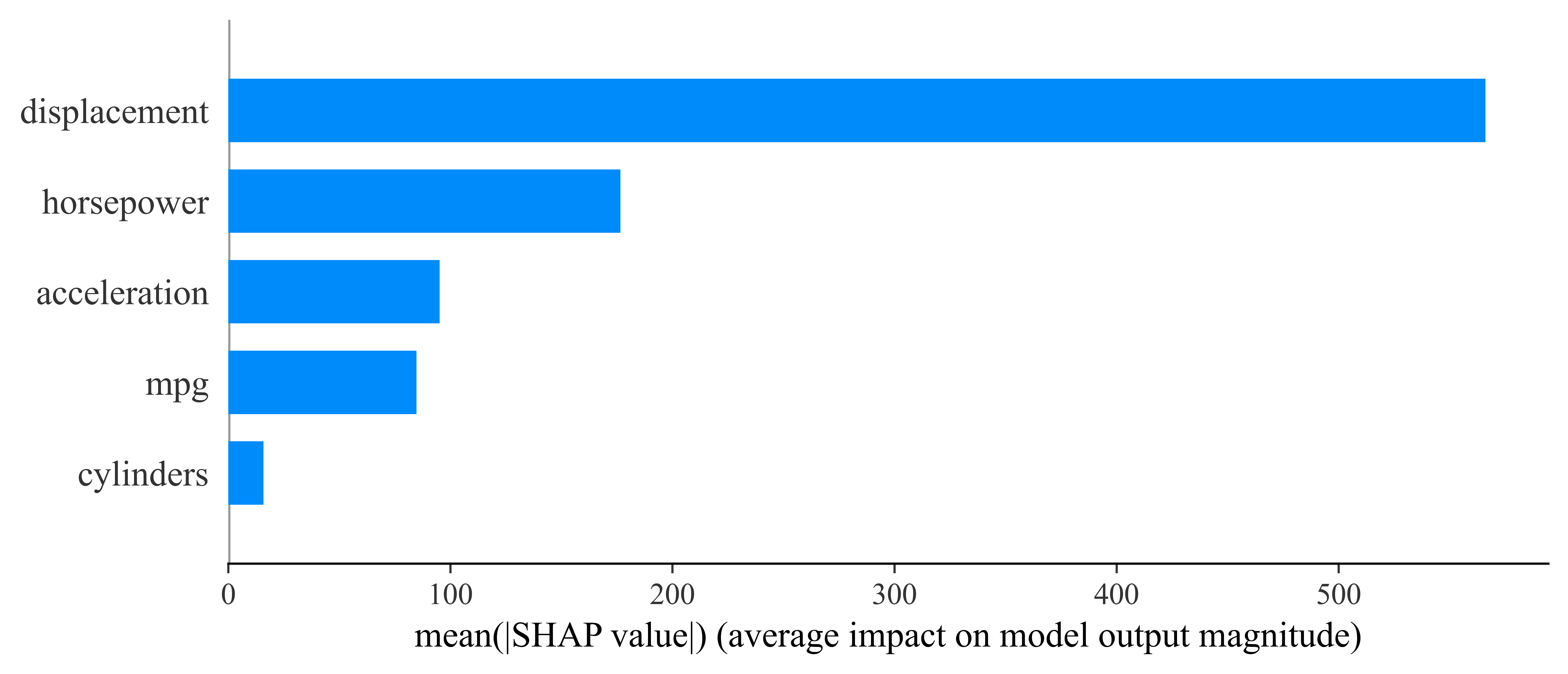 print("\n测试集评价指标:") print("均方误差 (MSE):", mse_test) print("均方根误差 (RMSE):", rmse_test) print("平均绝对误差 (MAE):", mae_test) print("拟合优度 (R-squared):", r2_test) if True: explainer = shap.TreeExplainer(best_model_lgbm) shap_values = explainer.shap_values(X_test) plt.figure(figsize = (10, 5)) shap.summary_plot(shap_values, X_test, plot_type = "bar", show = False) plt.tight_layout() plt.savefig('C:/Users/Administrator/Desktop/barplot.png', format = 'png',bbox_inches = 'tight', dpi = 1200) plt.show() plt.figure(figsize = (10, 5)) shap.summary_plot(shap_values , X_test, feature_names = X_test.columns, plot_type = "dot", show = False) plt.savefig('C:/Users/Administrator/Desktop/dotplot.png', format = 'png',bbox_inches = 'tight', dpi = 1200) plt.show() df_causally = df[['displacement', 'horsepower', 'acceleration', 'weight']] df_causally if True: labels = [f'{col}' for i, col in enumerate(df_causally.columns)] data = df_causally.to_numpy() model_lingam = lingam.ICALiNGAM() model_lingam.fit(data) dot_graph = make_dot(model_lingam.adjacency_matrix_, labels=labels) dot_graph.render("C:/Users/Administrator/Desktop//lingam_causal_graph", format = "png")