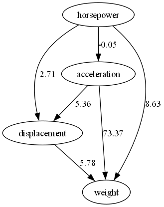 if True: np.set_printoptions(precision = 3, suppress = True) np.random.seed(0) graph_dot = make_graph(model_lingam.adjacency_matrix_, labels = labels)